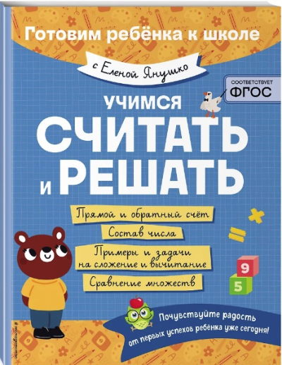 УЧИМСЯ СЧИТАТЬ И РЕШАТЬ с Еленой ЯнушкоЗанимаясь по этой книге, ребёнок потренирует навыки счета,